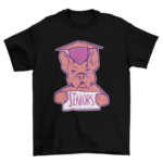 Cool t-shirt design consisting of a bulldog wearing a graduation cap, and a sign that says “Seniors”.
