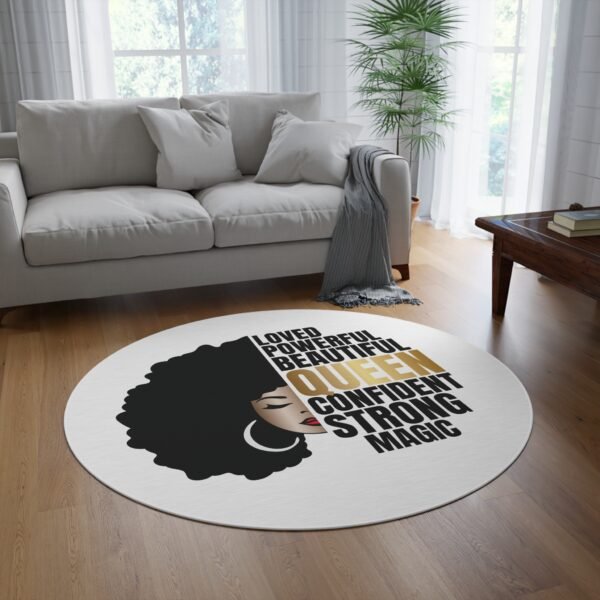 Be the first to review “Queen Affirmation Round Rug — Loved Powerful Beautiful Confident Strong”